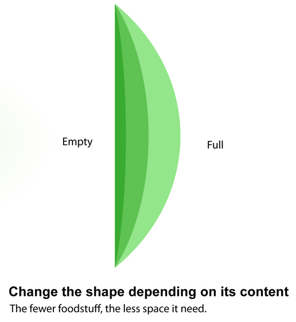The Electrolux Bio Robot Refrigerator is a concept where the Bio Robot cools biopolymer gel through luminescence. A non-sticky gel surrounds the food item when shoved into the biopolymer gel, creating separate pods. The design features no doors or drawers, and the food items are individually cooled at their optimal temperature thanks to the robot. And since it can take any orientation (hung vertically, horizontally, and even on the ceiling), and can be modified in size, you can fit it in any apartment. More details in the images… Designer: Yuriy Dmitriev