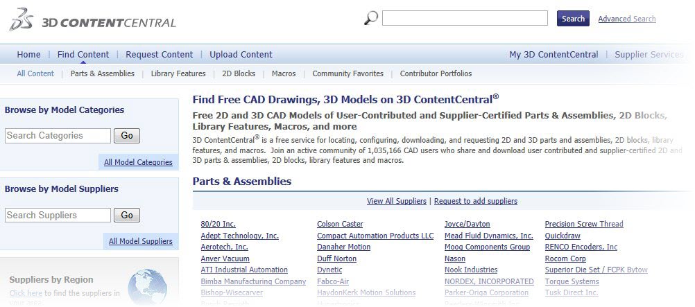 If you’re about to model any sort of purchased part, check this site out first as there are countless free searchable parts and assemblies available in native SolidWorks format. Yes, I said “free.” The only stipulation is you agree to receive an email from the company whose products you’ve downloaded, but that’s a rather small price to pay! Additionally, you are able to post your own company’s parts for others’ use in their designs…so it’s a win-win situation and the site has spawned quite a user community.