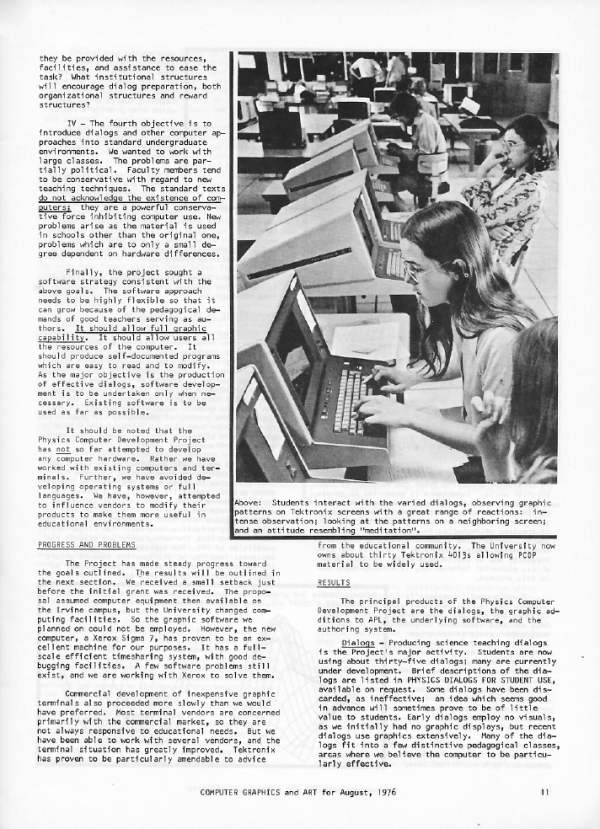 “COMPUTER GRAPHICS & ART is a new international quarterly of interdisciplinary computer graphics for graphics people and computer artists. This new periodical is aimed at students, teachers, people from undergraduate and graduate institutions, researchers, and individuals working professionally in graphics. Its topical coverage is broad, embracing a variety of fields. It is useful, informative, entertaining, and current.“