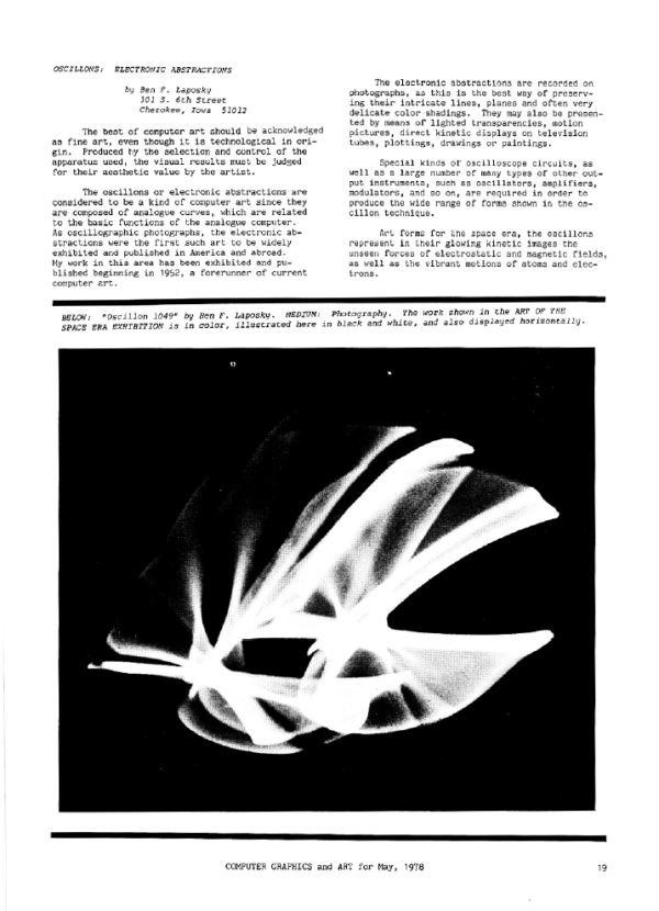 Artists featured: A. Michael Noll, Vladimir Bonačić, Grace C. Hertlein