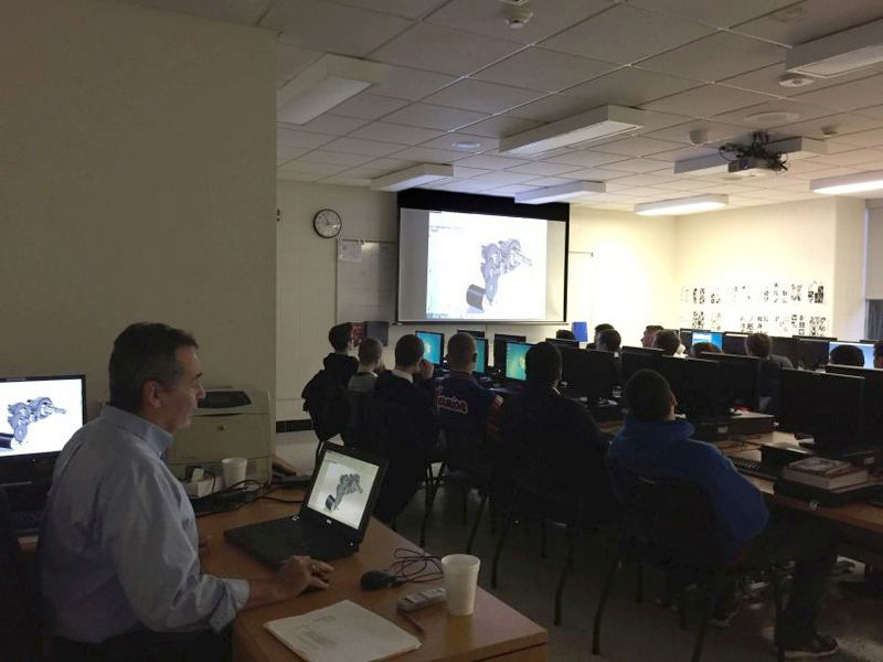I was recently invited to join the Simulation Prototyping Consortium for Business and Government at Marmion Academy. The students there are not only learning SOLIDWORKS but applying its analysis and simulation tools to real world problems in concert with local businesses. (Perhaps you saw my recent tweet on one of their projects.) Every bit as flattering, I was recently asked to “guest-teach” a SOLIDWORKS CAD class there, and it was a wonderfully enjoyable experience. Much of our conversation revolved around foundational topics, and I must say I’ve never met such an attentive, interested group of students who wanted to learn not only the software but many of its best practices. The students also have a 3D printer in the classroom.